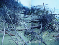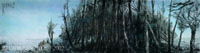 有一次再度造訪七股海邊的防風林,發現數公里長的海邊,沿著防風林邊緣,橫豎、層層堆疊著浮木,是被海浪拔起的木麻黃成了枯木,再被打到 岸邊,加上其他的浮木,隔著大海要回去的平坦沙灘,海浪依舊拍打著沙岸,如此「慘烈」壯觀的場面,難免訝異與傷感吧 ! 畫家驚覺到防風林有消失的可能,於是加緊腳步,試圖畫下各種不同感覺情境的木麻黃林現象。