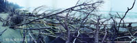 呼應前已述及的大型作品「漲潮」,海浪推送著枯死木麻黃近在咫尺; 「海之隅」